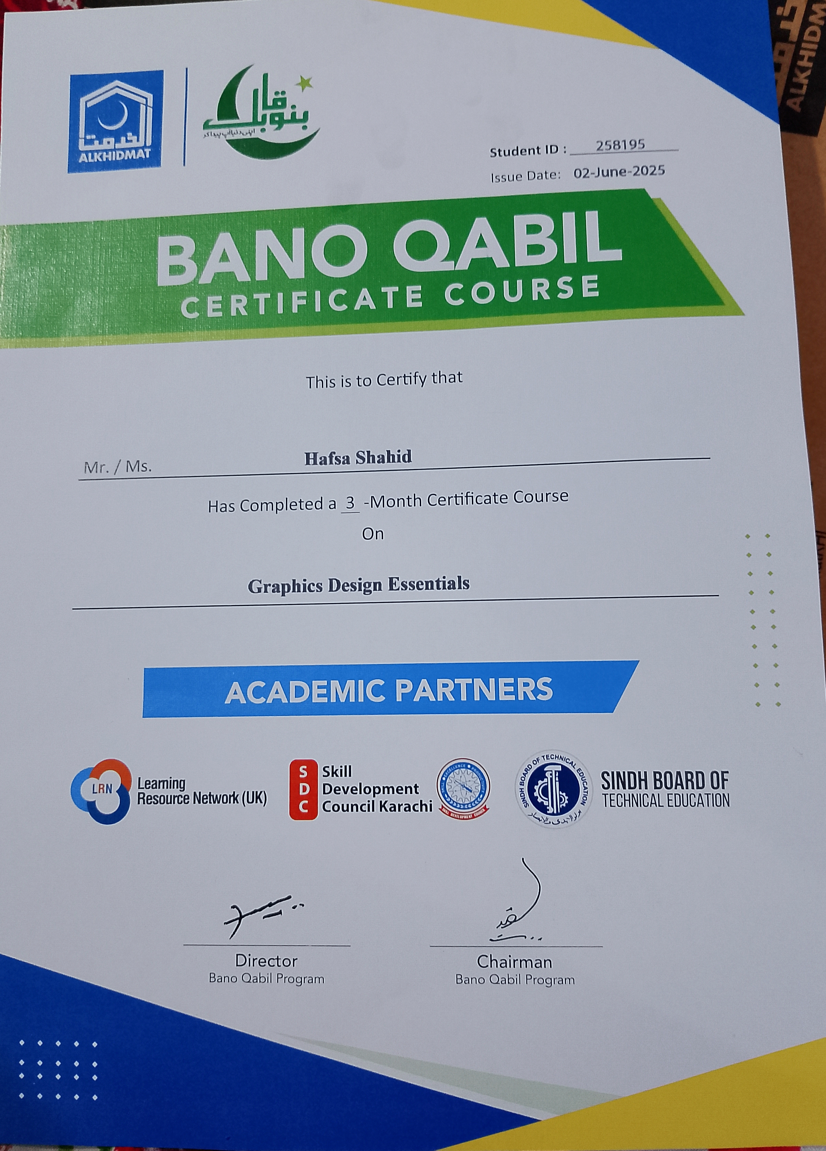 Completed 3-month intensive course covering Adobe Illustrator, Photoshop, and Canva. Created logos, mockups, and branding materials, enhancing UI/UX and design fundamentals.